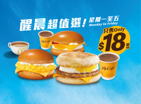 -Selected Morning Value Picks : Filet-O-Fish/Sausage McMuffin with Egg/Scrambled Eggs Burger with McCafé Hot Latte(S)