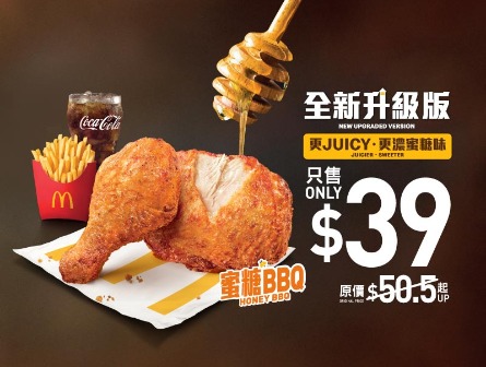 【更濃蜜糖味】$39升級版蜜糖BBQ麥炸雞(2件)套餐 [可重用]