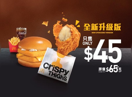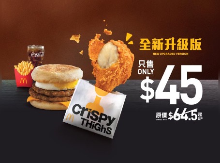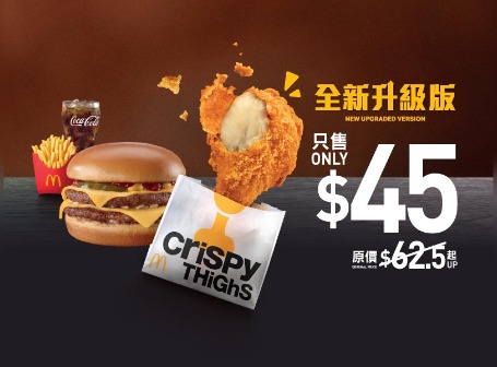 $45 雙層豬柳蛋漢堡四道菜套餐配升級版麥炸雞(原味/蜜糖BBQ)1件 [可重用]