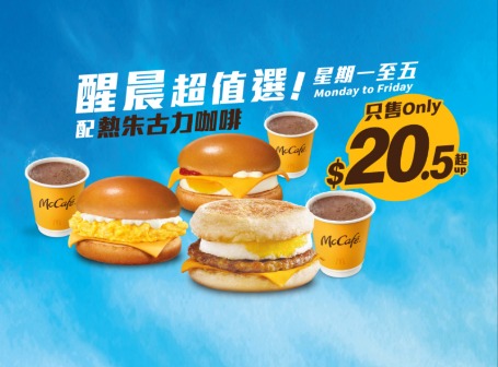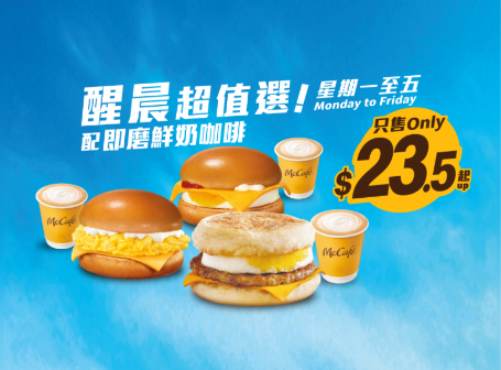 -指定醒晨超值選:魚柳飽/豬柳蛋漢堡/炒雙蛋飽配McCafé熱即磨鮮奶咖啡(細)