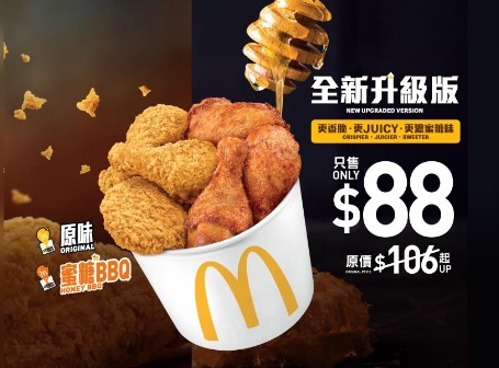 $88(3件原味麥炸雞+3件蜜糖BBQ麥炸雞)(原價$112起)