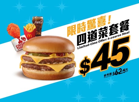 【限時驚喜】$45 雙層芝士孖堡四道菜套餐配麥炸雞(原味/蜜糖BBQ/辣味)1件 [可重用]